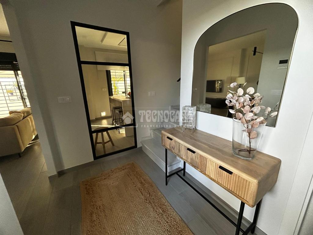 Casa de reciente construcción de 4 habitaciones (1 en la planta baja) dispone de 3 baños 1 en la planta de abajo y 2 en la de arriba , uno de ellos es baño suit todos los baños cuentan con calentador de toallas. Dispone de una gran cocina abierta al salon totalmente reformada con isla dandonos acceso a un precioso y actual patio para disfrutar con la familia y amigos, la habitación principal dispone de un vestidor,posee un porche delantero y cochera en el que se encuentra un lugar para depositar bicicletas, tambien dos espaciosos balcones con vistas magnificas . La casa está totalmente amueblada y equipada . Con el mobiliario, electrodomesticos y el resto de equipos practicamente a estrenar .